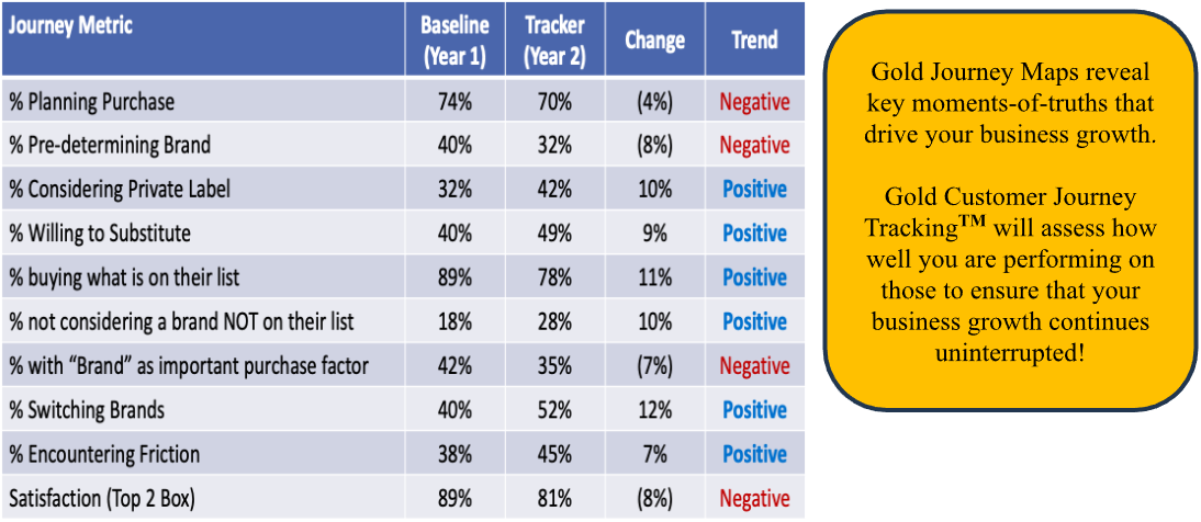 The main objective of Gold Customer Journey TrackingTM is to measure customer experience, satisfaction and perceptions, informing brand experience position and driving improvement efforts. Therefore, assessments of the Customer Journey Experience should be captured annually.